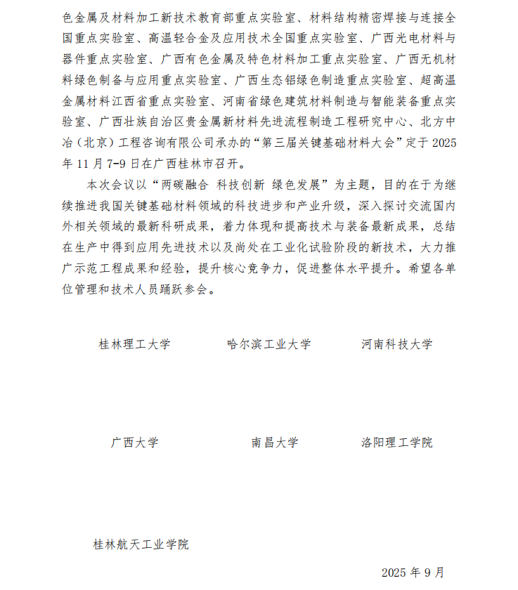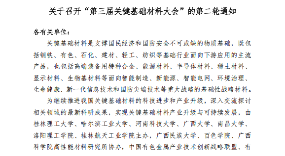 【学术会议】关于召开“第三届关键基础材料大会”的通知(第二轮)