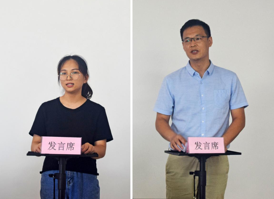 学生代表蒙孔兰与指导教师代表刘坡博士发言