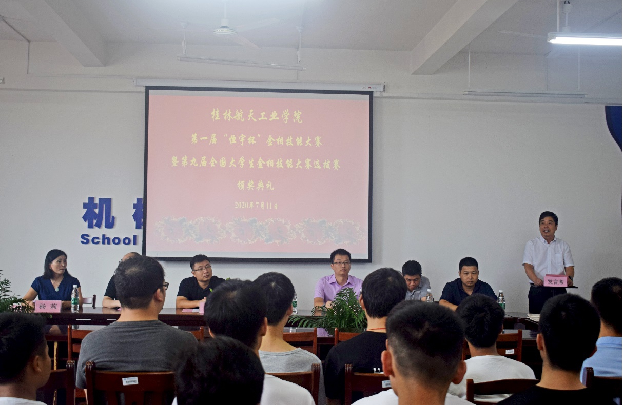 在颁奖典礼上,教务处处长王国富致辞,参赛学生代表和指导教师代表分别发言,机械工程学院团委书记黄大键宣读获奖学生名单,与会领导为获奖学生颁发获奖证书和奖品,机械工程学院党委书记唐韬总结发言,颁奖典礼由科技处杨莉教授主持。