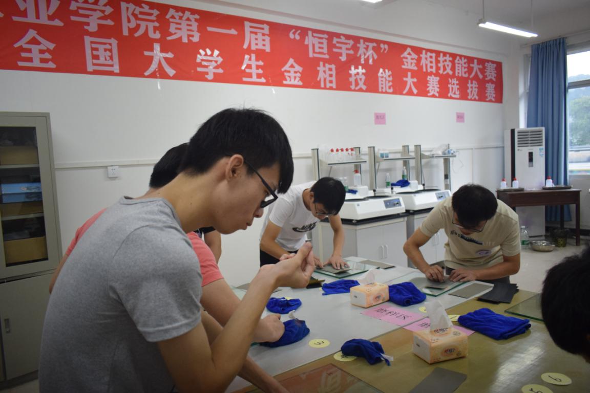 为进一步弘扬世界杯官网大学生科学精神,培养新时代工匠精神,提高学生制备金相技能,选拔优秀学生参加第九届全国大学生金相技能大赛,7月11日机械工程学院在巡天楼205举办了第一届“恒宇杯”金相技能大赛暨第九届全国大学生金相技能大赛选拔赛,本次比赛得到了武义恒宇仪器有限公司的赞助支持。学校教务处处长王国富、副处长蒋丽源莅临比赛现场指导,成型技术教研室部分教师担任本次比赛评委。