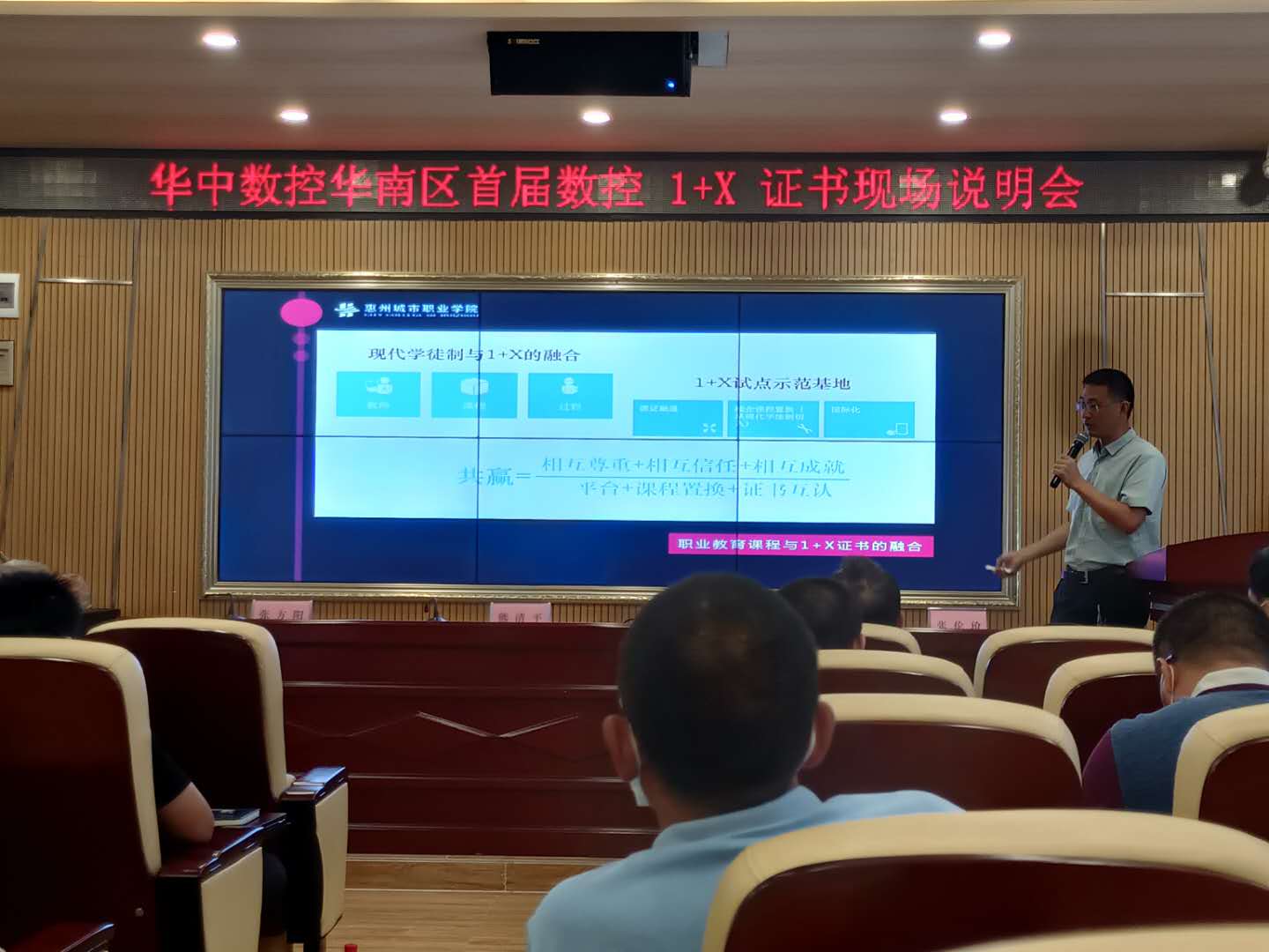 8月11日,由广东技术师范大学张伦玠教授进行《数控车铣加工职业技能等级证书标准解读》。湖南网络工程职业技术学院许孔联院长对《数控车铣加工职业技能等级证书考核解读》。华中数控有限公司刘怀兰博士,讲解《“1+X”书证融通的思考》。惠州城市职业学院张方阳博士,讲解《机械行业职业教育标准建设的思考》。