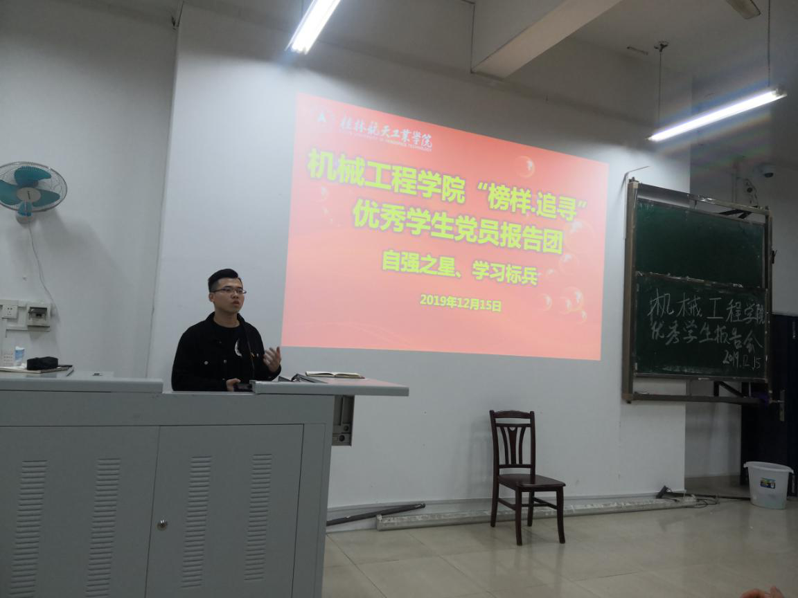 本次会议出席嘉宾有陈国恩、韦杰松、杨义平三位优秀学生党员,2019级飞行器制造工程、2019级机械电子工程专业全体学生参加会议,会场座无虚席。会中三位优秀学生党员依次上台演讲分享,主要以自己的亲身经历,就生活与学习两方面分享了自己的事迹、经验及建议,生动诠释了大学期间勤奋刻苦、积极主动、敢于拼搏的重要性。并告诉19级学生们要多参加活动、多参加比赛、多学习知识,少待在宿舍、少玩手机。作出立榜样、多学、多问、多积极等珍贵建议。演讲人以幽默的演讲方式,赢得观众的眼球,使得现场氛围活跃轻松,现场观众满是求知之眼神。