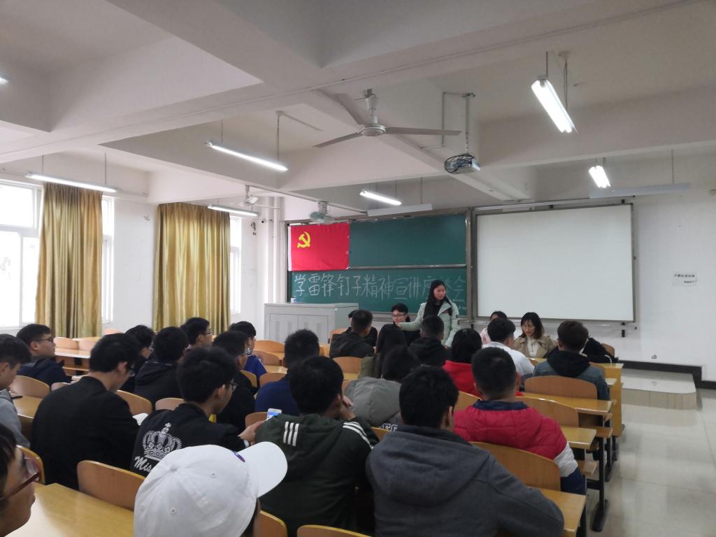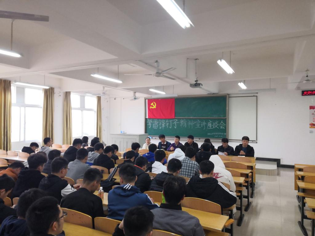 2019年3月10日下午18:00机械工程学院党总支学生第一支部与18级机械设计制造及其自动化1、2、3班在飞天楼213、214、215开展“学雷锋钉子精神”宣讲座谈会。