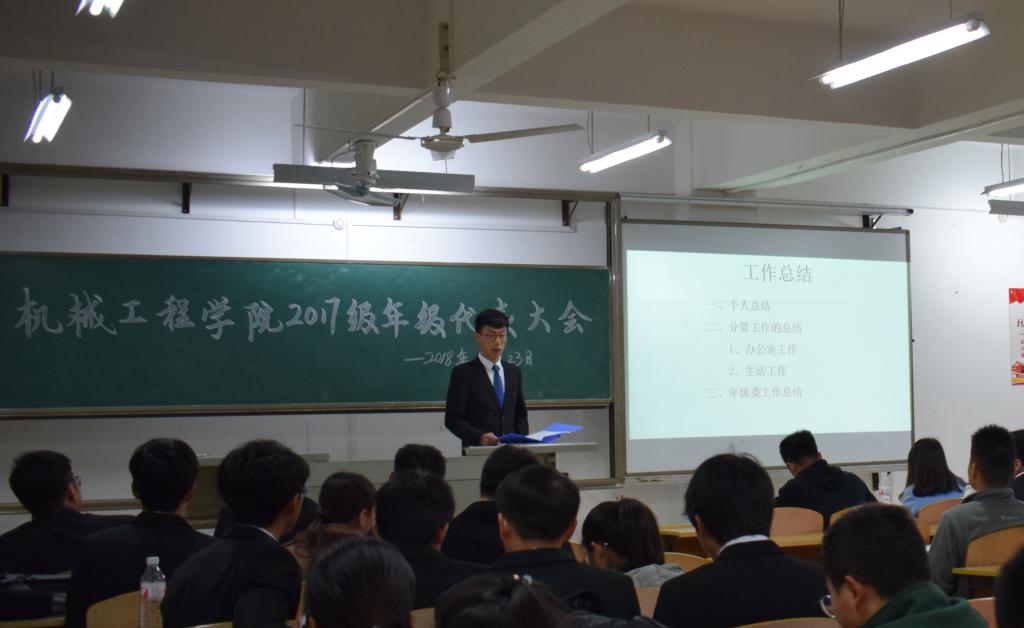 12月23日晚19:00,机械工程学院2017级年级代表大会在飞天楼207教室召开,学院学生辅导员陈秋静、覃宇华老师,团委学生副书记莫慧俊、学生会主席黄鹏,2017级各班代表团出席了本次大会。