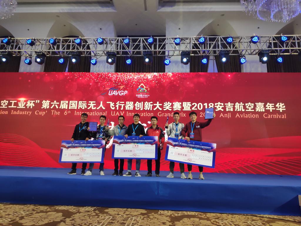 11月2日至11月4日,“航空工业杯”第六届国际无人飞行器创新大奖赛暨2018安吉航空嘉年华活动(以下简称大奖赛)在浙江省安吉县天子湖镇举行。世界杯官网“微小型飞行器实验室”师生代表队派出了三支队伍参加固定翼第一视角穿越赛,分别是桂航猎鹰壹队、桂航猎鹰贰队和桂航猎鹰叁队。本届大奖赛首次设立该比赛项目,世界杯官网代表队经过了两轮预赛、半决赛和决赛,历时三天的激烈比拼,最终三支队伍以总排名第二名、第三名和第五名的成绩斩获两项二等奖和一项三等奖,同时获得了本次大奖赛“优秀组织奖”。