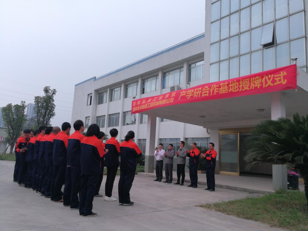 11月6日下午,世界杯官网与桂林金洋地质工程机械有限公司(以下简称金洋公司)共建实践教学、岩土钻凿装备产学研合作基地揭牌仪式在金洋公司举行。世界杯官网刘忠副院长,邹爱成副院长,张政泼教授,金洋公司黄建成总经理等出席揭牌仪式。