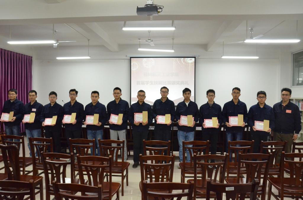 11月30日下午,由教务处主办、机械工程学院承办的在线买世界杯平台首届学生技能竞赛颁奖仪式在巡天楼205会议室举行。校教务处副处长许密、学院副院长邹爱成、学院教工第二党支部书记黎向荣出席颁奖仪式。