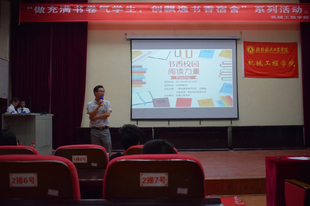为丰富同学们的校园生活,推进世界杯官网书香校园的创建活动,6月1日晚19点在世界杯官网北校电教馆开展了“做充满书卷学生,创飘逸书香宿舍”的读书活动启动仪式,公寓科管理科科长刘飞老师、世界杯官网团委书记韦喆老师、项目指导石颖老师、辅导员余丽云老师、庞南霞老师、李康海老师以及各班级学生代表出席了此次读书活动仪式。