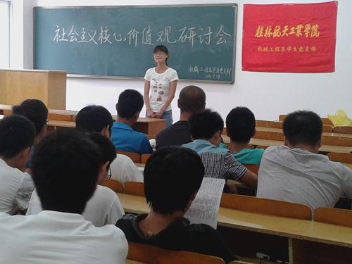 2014年9月24 号下午16:30-18:30在南实训楼224教室,由机械工程系学生党支部组织开展了以“社会主义核心价值观”为主题的党员、预备党员研讨会。