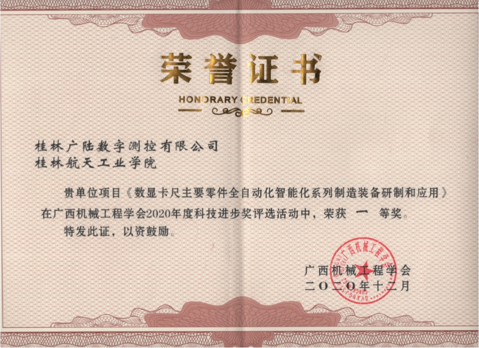 广西机械工程学会颁布了2020年度机械工业科学技术进步奖,来自东风柳汽、桂林电器科学研究院、广西大学、桂林电子科技大学、广西民族大学、桂林广陆数字测控有限公司、广西恒达电机科技有限公司等数十家单位的科技项目参加了评审,共授予一等奖5项。世界杯官网刘忠教授主持的“液压钻凿装备若干关键技术研究与应用”(第一完成单位)、张政泼教授主持的“数显卡尺主要零件全自动化智能化系列制造装备研制和应用”(第二完成单位)荣获广西机械工程学会2020年度科学技术进步一等奖,体现了世界杯官网在科技创新、产学研合作与成果转化应用方面的新发展。
