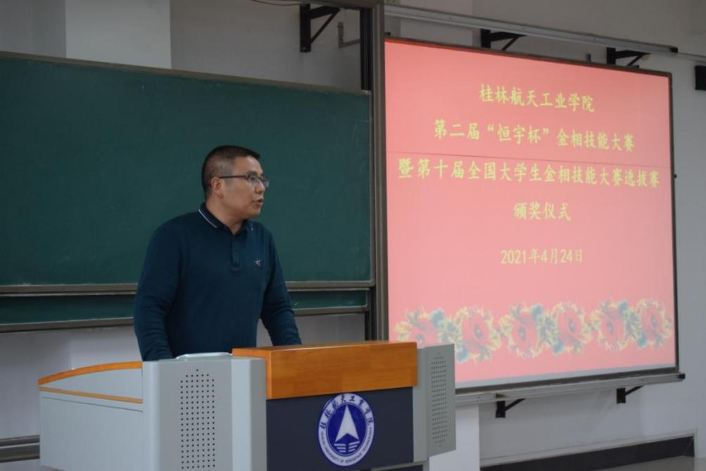 机械工程学院党委书记谢雄辉在颁奖仪式上致辞