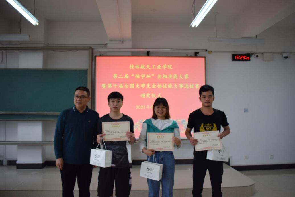 在颁奖仪式上,谢雄辉书记致辞发言,勉励获奖学生再接再厉,期待在区赛和国赛中获得优异成绩。上届全国大学生金相技能大赛一等奖获得者韩建文作为学生代表发言,分享了制样经验和比赛感受。刘坡博士作为指导教师代表发言,表示会继续指导学生积极备战区赛和国赛,力争获得优异成绩。与会领导和评委老师为获奖学生颁发获奖证书和奖品,颁奖仪式由杨莉教授主持。