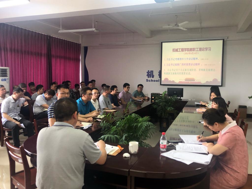 为贯彻落实学校党委关于教职工理论学习的要求,5月14日下午,机械工程学院组织全体教职工在巡天楼205会议室开展习近平总书记在清华大学考察时重要讲话精神、视察广西时重要讲话精神以及关于立足新发展阶段、贯彻新发展理念、构建新发展格局的重要论述等方面的专题学习。会议由学院党总支书记谢雄辉主持和领学。