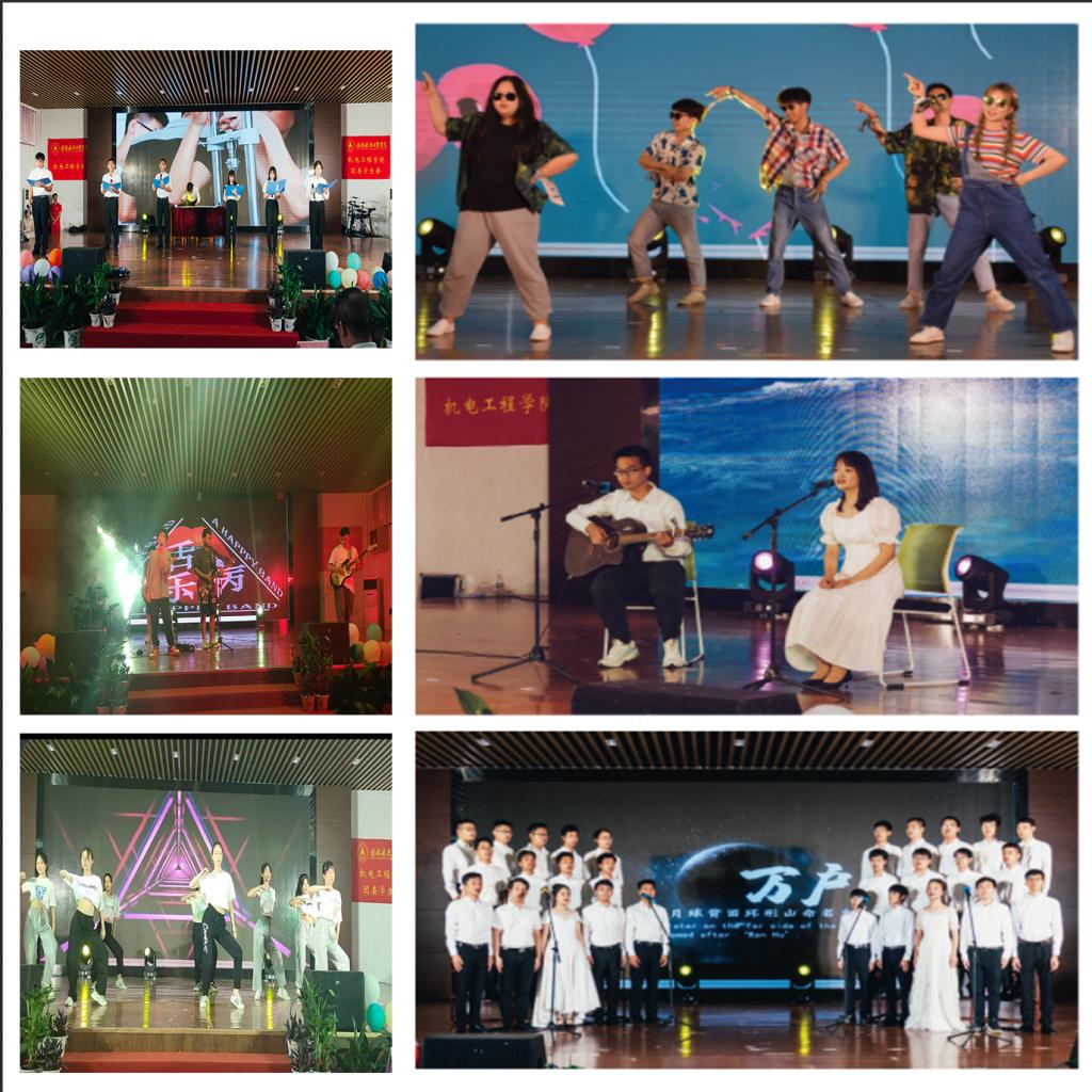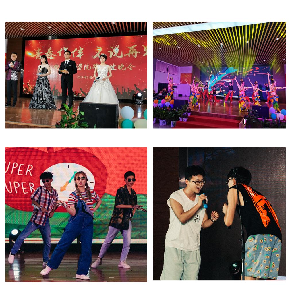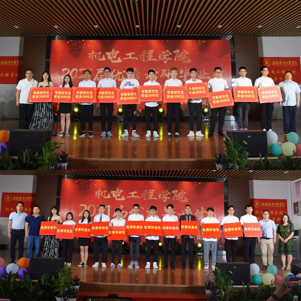 六月毕业季,青春不散场。晚会在文工团带来的《啦啦操》表演中正式拉开序幕,宣泄着青春的激情与活力。随后,一个个精心编排的节目陆续上台,整场晚会节目形式多样、内容丰富。一首毕业生诗朗诵《桂航,我们不说再见》,勾起了大家对大学生活的无尽的回忆和不舍;毕业生寄语视频回顾了一路走来的大学生活,印证了同学们的精彩瞬间和成长经历,点点滴滴,历历在目;老师寄语,为2021届毕业生们送上最为真挚的祝福;小品《校园一角》、毕业生相声《整挺好》精彩搞笑的对话和演员们绘声绘色的表演,引得观众捧腹大笑,赢得了观众阵阵掌声;毕业班师生吉他弹唱《亲爱的旅人啊》带我们领略青春的滋味和离别的不舍……除了精彩节目,晚会还安排了好玩又刺激的中场摇一摇、互动抽奖环节。晚会中特地安排了毕业生表彰环节,表彰优秀毕业生和考取研究生的毕业生代表,由学院领导给他们颁奖,表彰了他们的成绩,对他们的努力表示嘉许,也希望所有的机电学子在未来的道路上取得更加辉煌的成就。最后,晚会以一曲毕业班辅导员与毕业生们的大合唱《祝你一路顺风》落下帷幕,将毕业生晚会推向了高潮,毕业生们深情地倾诉着对母校和学院的眷恋不舍之情。