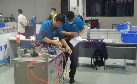 裁判按照世赛标准从专业技术规范、产线功能完成、时间及效率三方面进行评分,最后根据综合得分确定晋级队伍,竞争相当激烈。