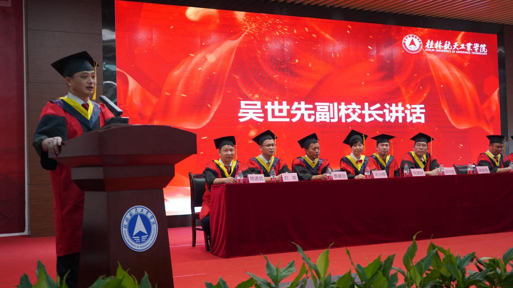会上,吴世先副校长给毕业生们送上美好祝愿和期许。“珍惜新身份”,望同学们积极进取、勇攀高峰,学校以大家为荣;“踏上新征程”,愿同学们披荆斩棘、一路顺利;“勇担新使命”,告别桂航,同学们无论工作还是继续求学,都要心怀家国情怀,承担起家庭、社会以及国家的使命,努力成为国之栋梁。