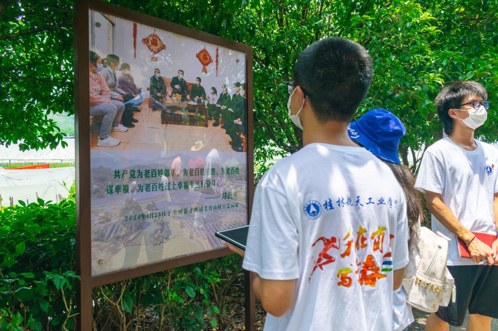 广西全州县才湾镇毛竹山村大力推进乡村振兴。7月19日,在线买世界杯平台在线买世界杯平台“我在‘窗口’写青春”实践团紧跟习近平总书记的红色步伐,前往才湾镇毛竹山村回顾习主席考察调研的足迹,再见鲜活场景,重温暖心话语,牢记初心使命。