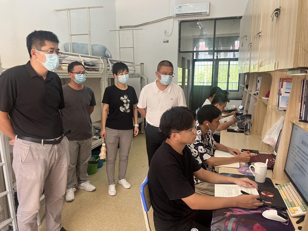 学院领导一行在教研室就教学准备、科研进度、设备安全等方面,同教师们进行交流;在实验室对教学器材,教学环境、电路配置等方面进行安全大检查;在学生宿舍,实地了解学生安全意识形态和线上上课实时状况,以及查看了宿舍设施与卫生环境,以学生为本、精细化工作,确保学院开学工作平稳开展。