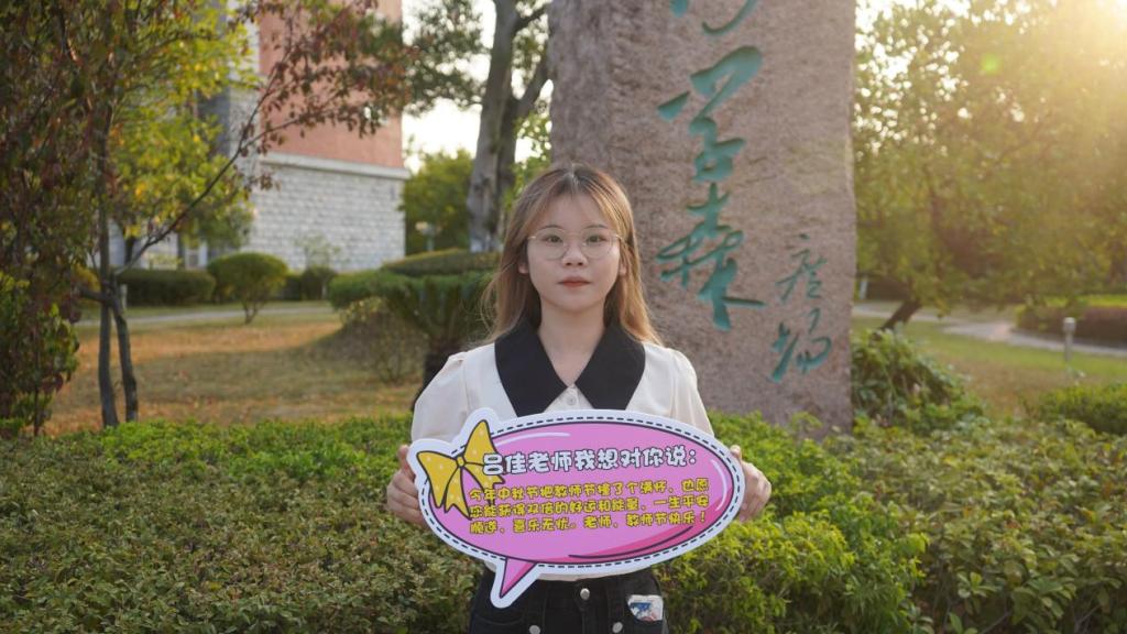 吕佳老师我想对您说:今年中秋节把教师节撞了个满怀,也愿您能获得双倍的好运和能量,一生平安顺遂,喜乐无忧。老师,教师节快乐!(2021级材料成型及控制工程2班黎炎松)