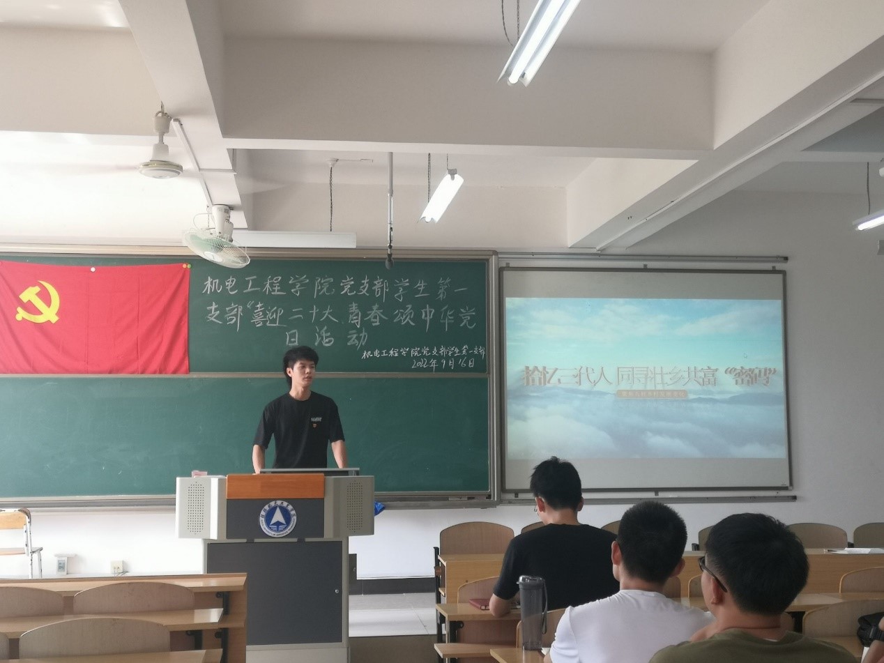 为迎接党的二十大胜利召开,发扬历史主动精神,激励党员乘势而上、砥砺前行。9月16日下午,在线买世界杯平台学生第一党支部在南校区飞天楼211教室组织开展“喜迎二十大、青春颂中华”党日活动。