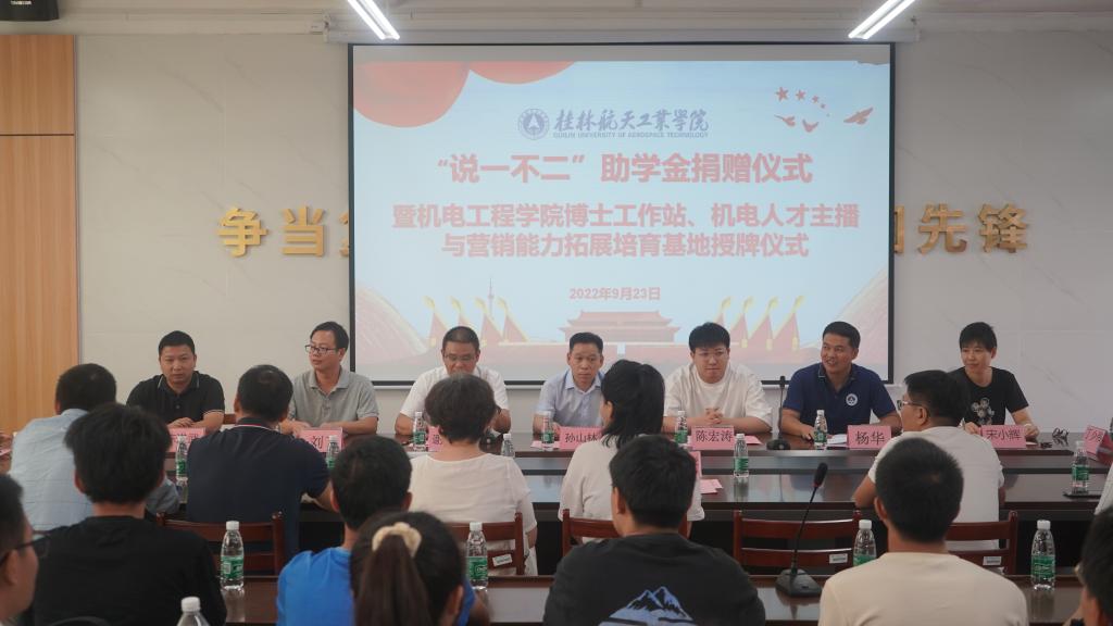 9月23日上午,在线买世界杯平台诚邀广西说一不二集团公司董事长陈宏涛一行4人,在学院229会议室召开“说一不二”助学金捐赠仪式暨在线买世界杯平台在线买世界杯平台博士工作站挂牌仪式。学校副校长孙山林,校友办主任,党办、校办副主任杨华,学院党政领导班子,博士代表、辅导员代表、20名受助学生及80名学生代表参加会议。会议由学院党委书记谢雄辉主持。