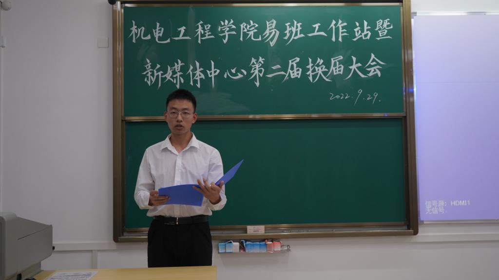 第三届主席团代表陈豪发言。他提出,在接下来的工作中会切实贯彻学院指导精神,积极展开工作,继承并发扬上一届新媒体中心的优良传统,将工作做出特色、做出品牌,加强内部建设的同时,要与其他的学生组织交流学习,协同中心各成员,努力将学院易班工作站暨新媒体中心做的更好!