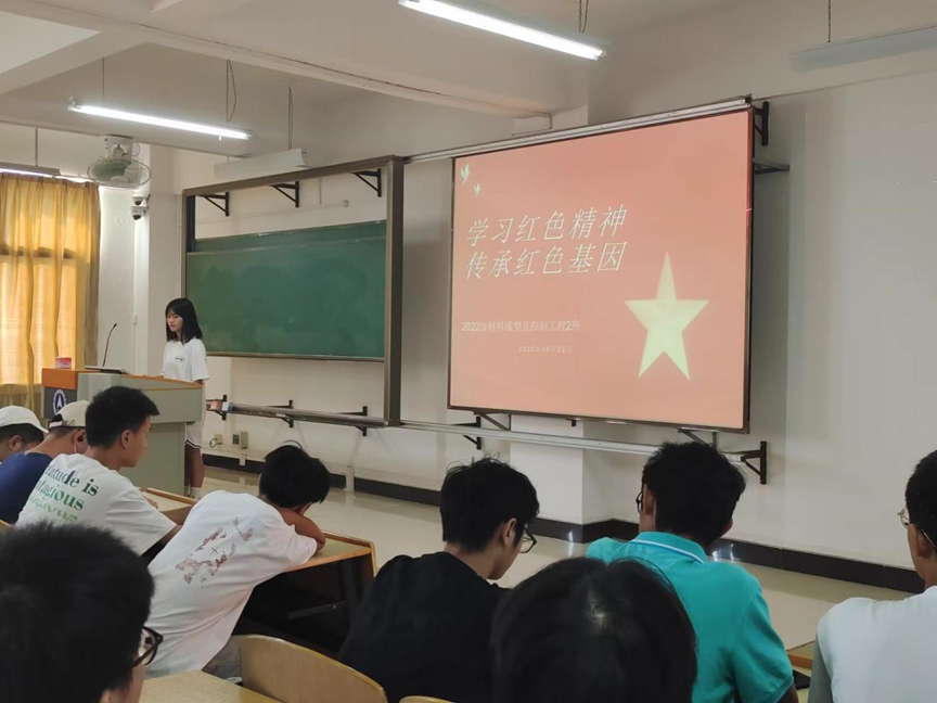 (图为2022级材控2班正在开展传承红色基因主题班会)