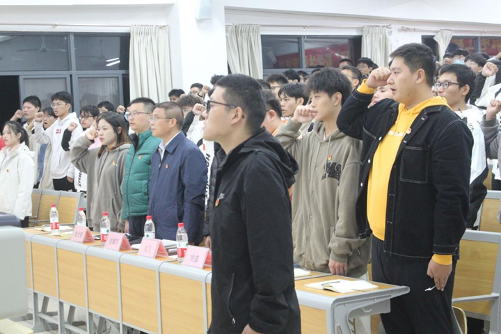 仪式上,谢雄辉书记以“高举中国特色社会主义伟大旗帜,为全面建设社会主义现代化国家而团结奋斗”为主题给同学们上了精彩的一课。他带领培训班成员深入学习贯彻党的二十大精神,并对世界杯官网学子提出三点要求:一是要深刻领会“两个确立”的决定性意义,汲取成长成才力量,要向大国工匠和航天英雄们学习;二是要通过“青年大学习”与”学习强国“等途径深入学习新时代党的创新理论,塑造坚韧坚强品格;三是在当下的学习及未来的就业中,都应主动融入服务现代化建设的发展大局,成就奋斗奋进人生。