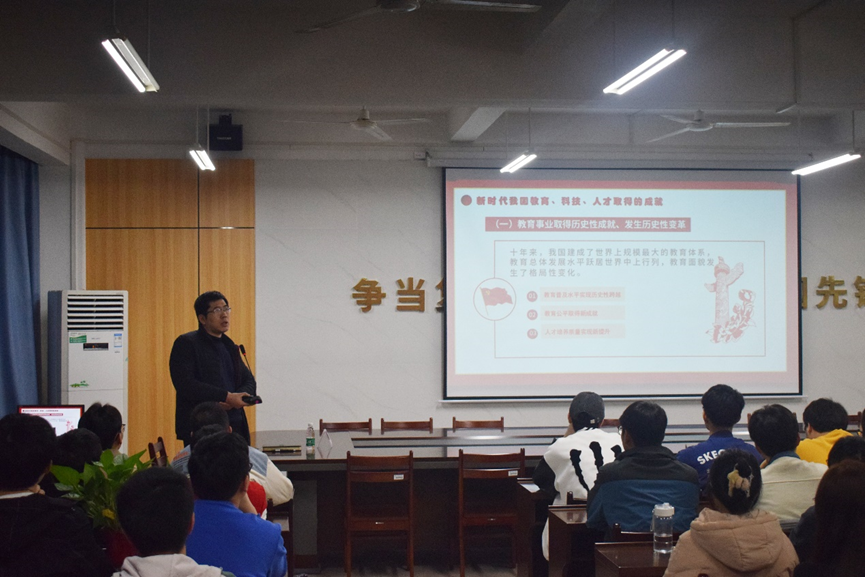 此次讲座的主题是“实施科教兴国战略,强化现代建设人才支撑”。韩兴国副院长围绕“新时代我国教育、科技、人才取得的成就”,“深刻把握二十大报告中教育、科技和人才工作部署的亮点”和“新阶段我国教育、科技、人才工作的新任务”这三章为学生详细解读了二十大报告的核心要义和重要内容。
