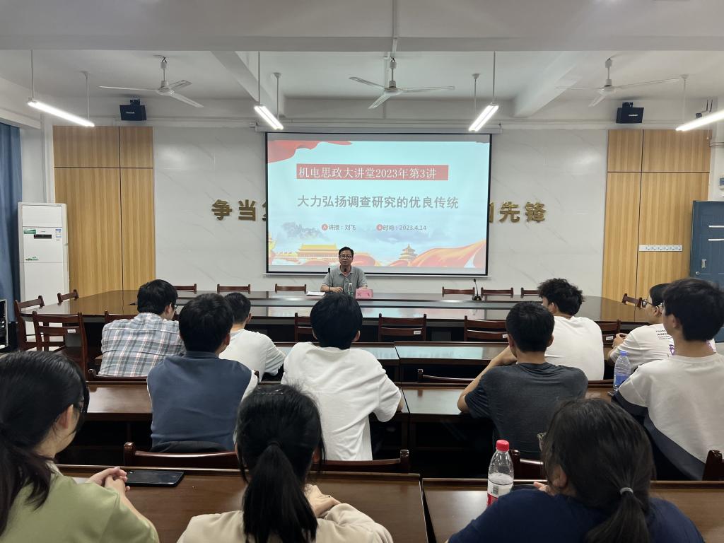 刘飞从《关于在全党大兴调查研究的工作方案》入手,介绍了党在历史上的调查研究传统,阐释了毛泽东同志的“论持久战”以及著名的《寻乌调查》,结合在校学生实际情况,强调了调查研究的重要性。