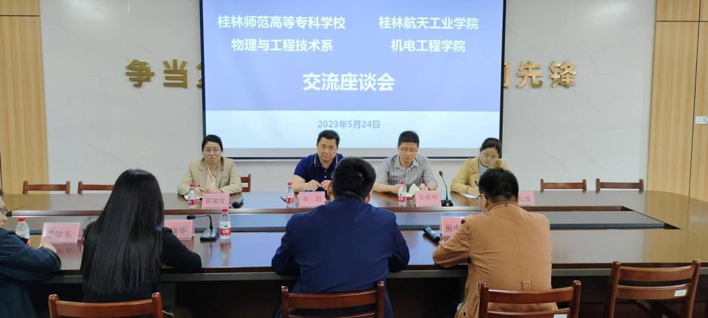 为学习在线买世界杯平台在人才培养方案、课程设置、实验实训室建设等方面的经验和做法,5月24日上午,桂林师范高等专科学校物理与工程技术系副主任邓毅等一行四人莅临学院,于巡天楼229开展交流座谈会,学院副院长(主持行政工作)韩兴国,学院熊中刚教师、徐晓华教师和覃学东教师参加本次交流座谈。