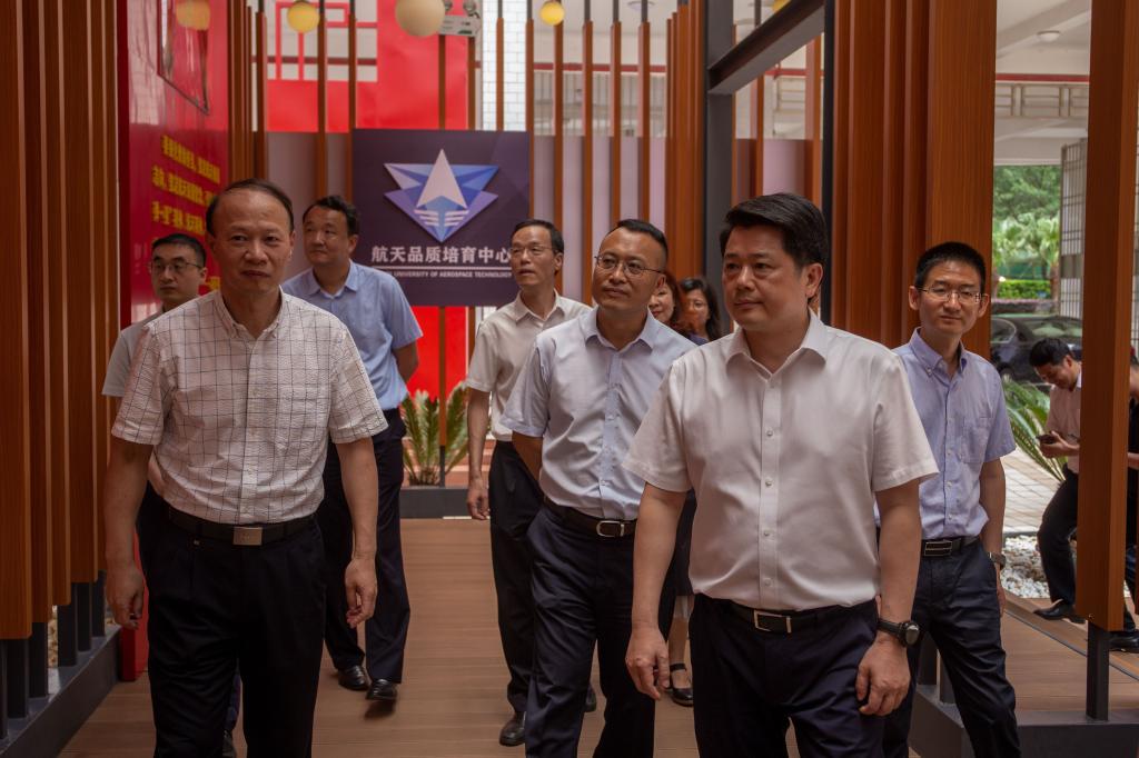 李楚高度关注学校未来发展,先后来到南校区巡天楼航天品质培育中心、在线买世界杯平台实验室、桂林航天航空科技城专业人才配套住房建设项目指挥部等地调研,了解学校航天育人的办学特色,实地考察在线买世界杯平台智能制造、特种装备、机器人实验室。在调研过程中,听取了桂林航天航空科技城专业人才配套住房建设项目建设进展汇报,并对于学校的工作给予了充分肯定。