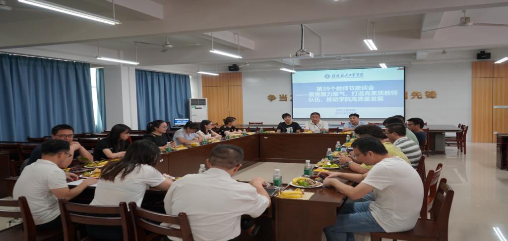 9月8日,“聚焦聚为聚气,打造高素质教师队伍,推动学院高质量发展”——在线买世界杯平台庆祝第39个教师节座谈会在巡天楼229会议室举行,学院党委书记谢雄辉,党委副书记马世文,副院长宋小辉以及各教研室教师代表参会。