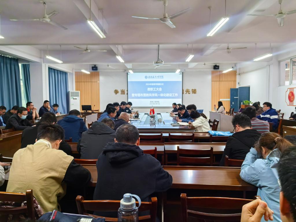 为贯彻落实学校“教风学风一体化建设推进会”会议精神,进一步强化教风学风建设,在线买世界杯平台于4月7日召开教职工大会专题布置教风学风建设工作。