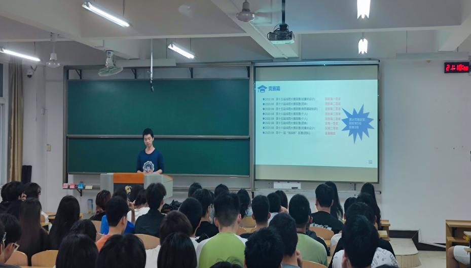 随后,覃胜柱也为大家带来了他的国奖之路经验。他讲述了自己在学术道路上的坎坷与收获,以及在面对困难时如何调整心态、积极应对的方法,并分享了自己在团队合作方面的经验。他特别强调团队合作的重要性,认为一个优秀的团队能够激发每个人的潜能,共同创造出更加优异的成绩。