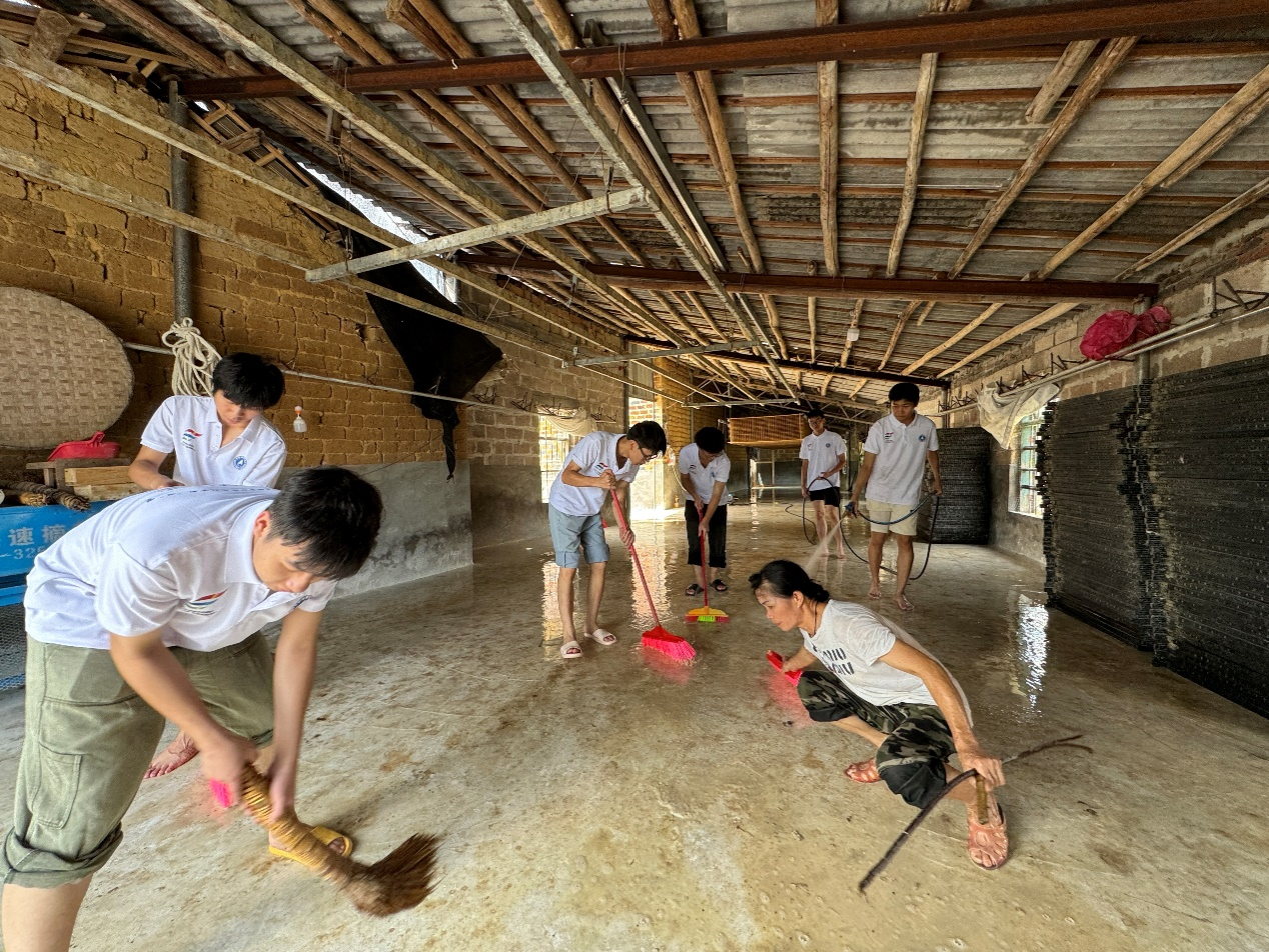 图6 实践队成员与蚕户一起清理蚕房并消毒杀菌