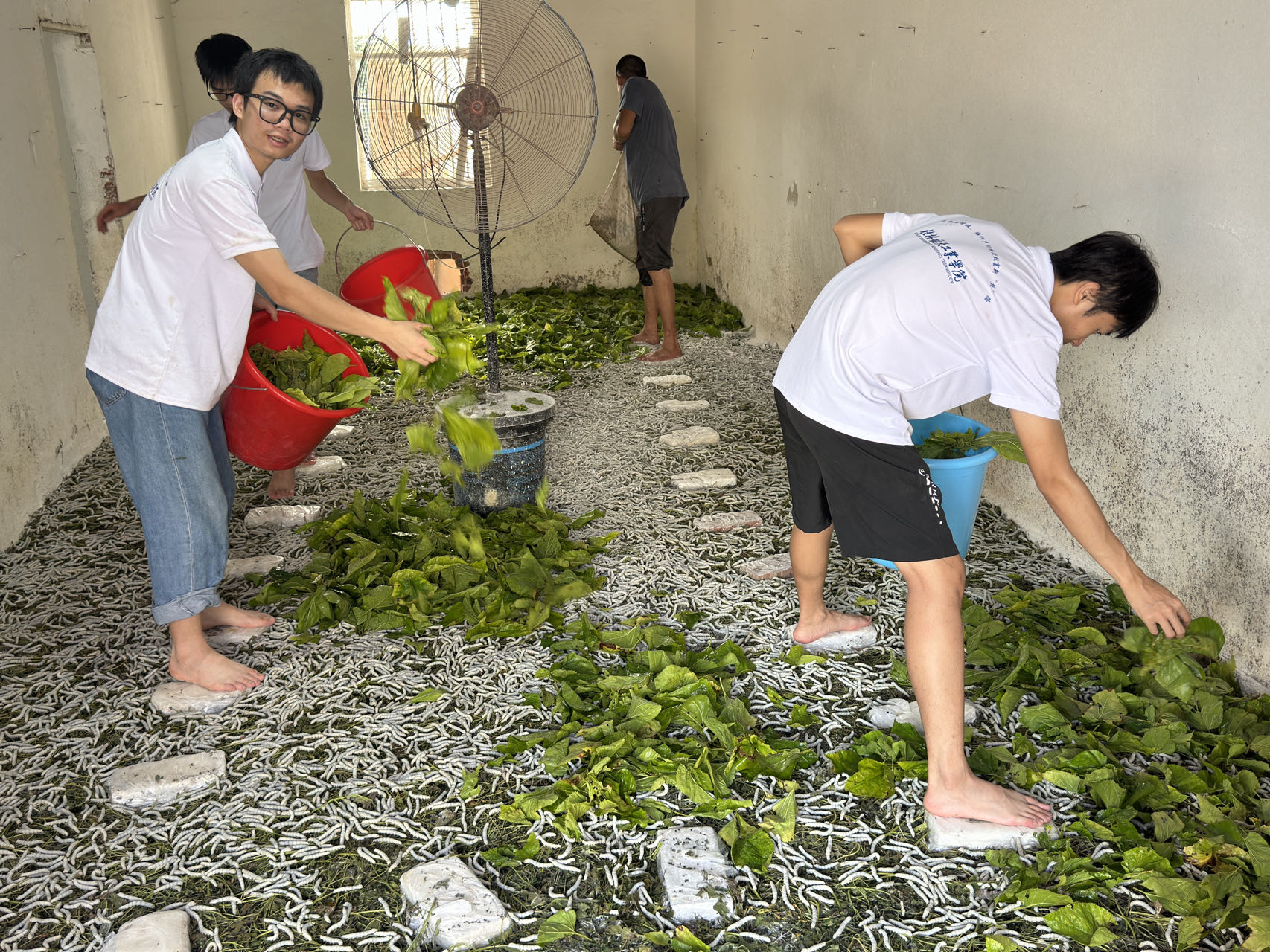 柳城县先后实施“国家‘东蚕西移’工程桑蚕基地建设”、“桑蚕优质高效种养及深加工集成应用示范”、“广西桑蚕标准园建设”等一系列项目,在全县种桑养蚕重点乡镇都建立了示范基地的基础上,组织大学生亲身体验种桑养蚕生活,通过劳动实践提高大学生对桑蚕文化的了解,提高大学生吃苦耐劳精神的同时,点线面的推广和传播当地特色积极产业,更好的带动乡村振兴发展。