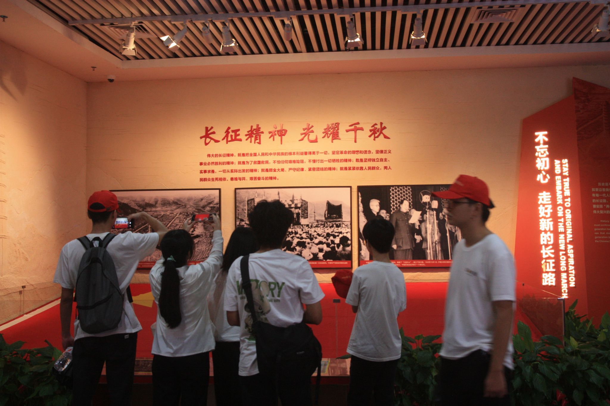 在湘江战役的模拟场景前,时间仿佛凝固。学子们仿佛亲眼目睹了红军战士们在枪林弹雨中不屈不挠的身影,感受到了那份为了信仰与胜利不惜一切的决绝与悲壮。讲解员深情的话语,如同穿越时空的桥梁,让历史与现实在这一刻交汇,让每一个在场的心灵都受到了深深的震撼。