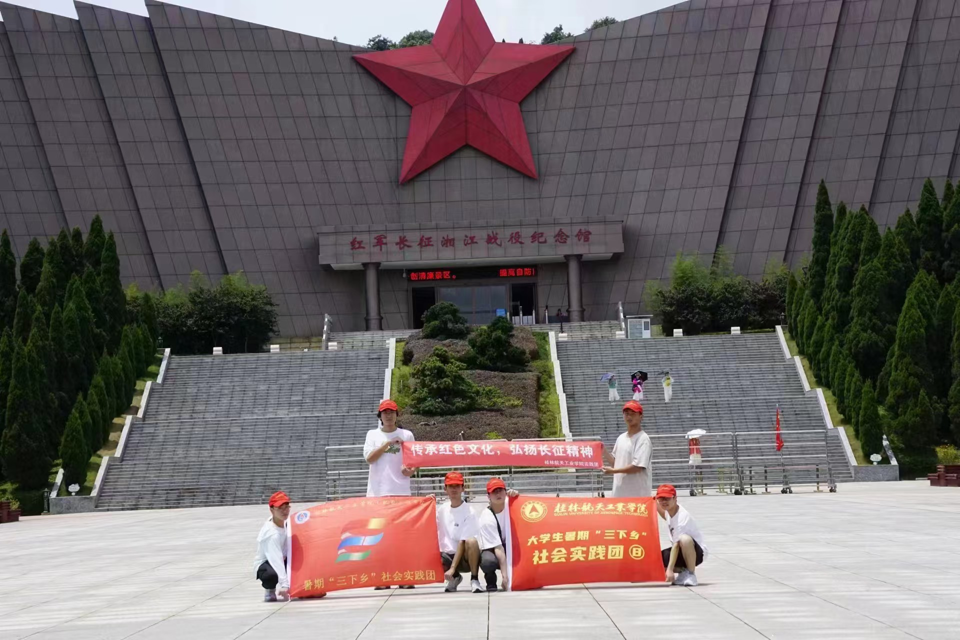 图为团队成员在全州红军长征湘江战役纪念馆前的合影。