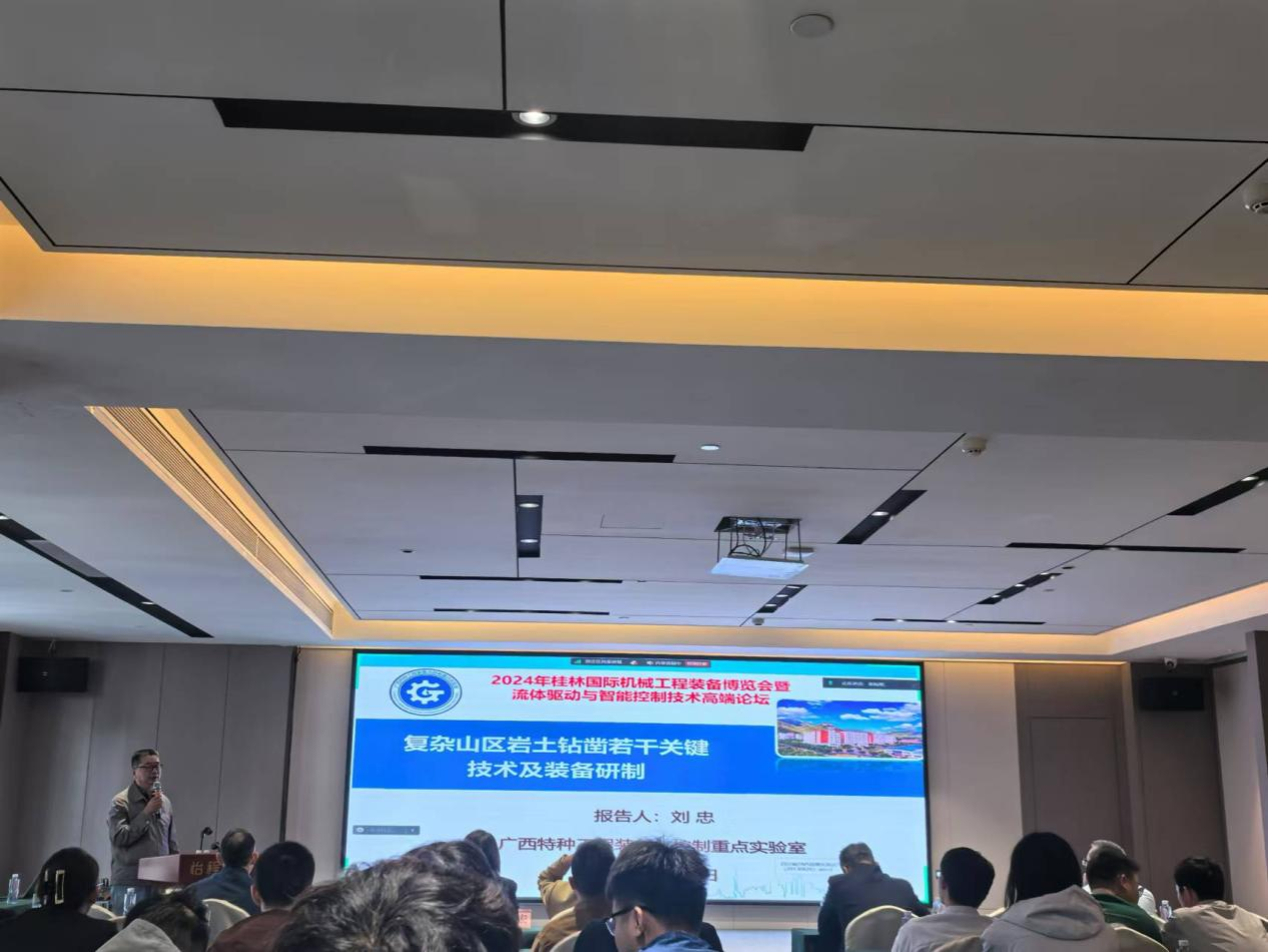 展会期间,张立国陪同中国工程院院士、机械工程专家、浙江大学求是特聘教授谭建荣院士参观了世界杯官网的展台,重点介绍学校工程训练能力创新培养模式及科技成果转化整体情况;广西特种工程装备与控制重点实验室主任、在线买世界杯平台教授刘忠作《复杂山区液压钻凿关键技术及装备》的学术报告。