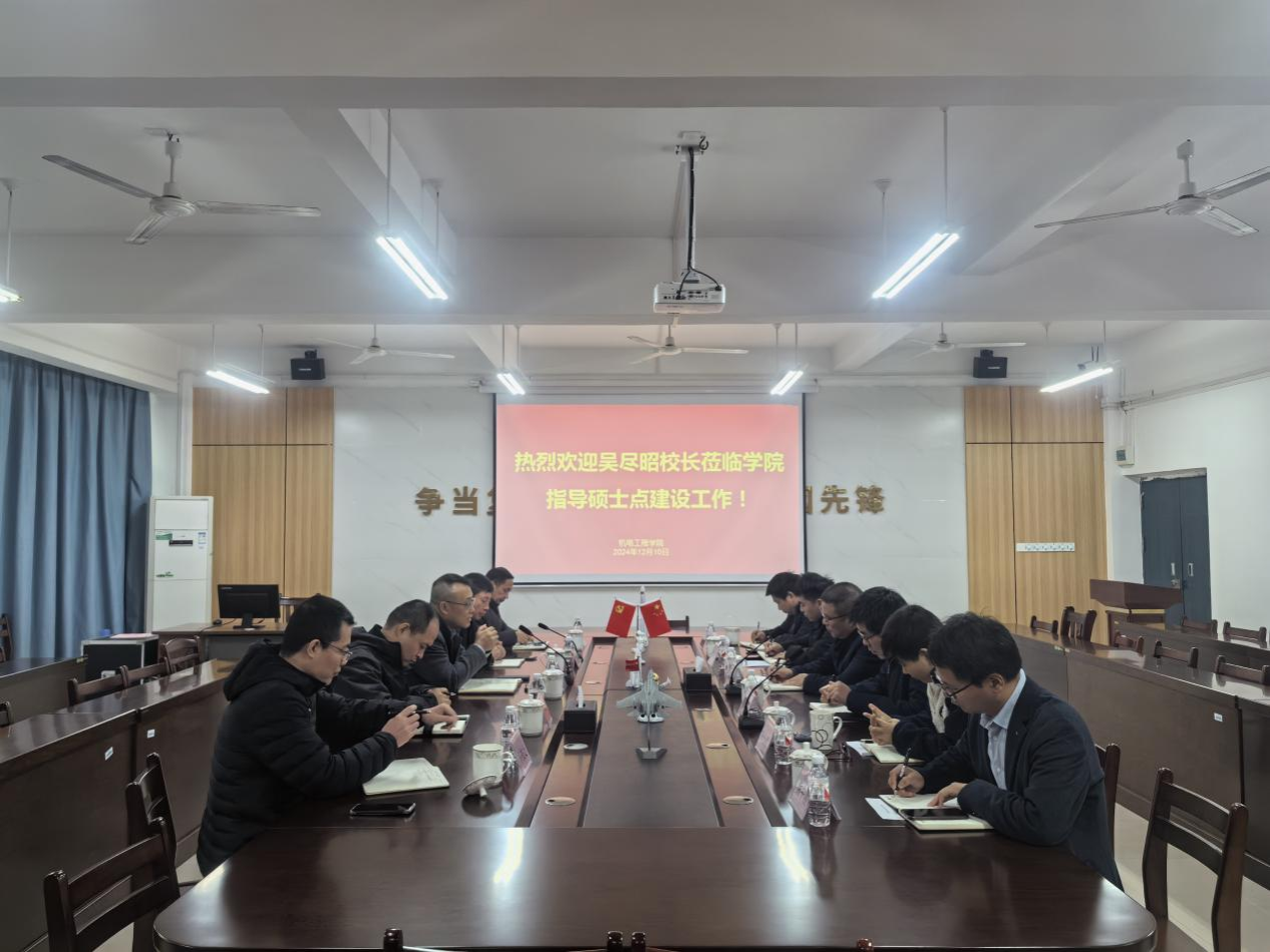 12月10日上午,校长吴尽昭,副校长张立国,发规处、人事处、科技处等职能部门相关负责同志一行莅临在线买世界杯平台,调研指导机械硕士点建设工作,并听取了相关汇报和建议。学院党政领导班子、博士教师代表参加了调研交流,会议由学院党委书记谢雄辉主持。