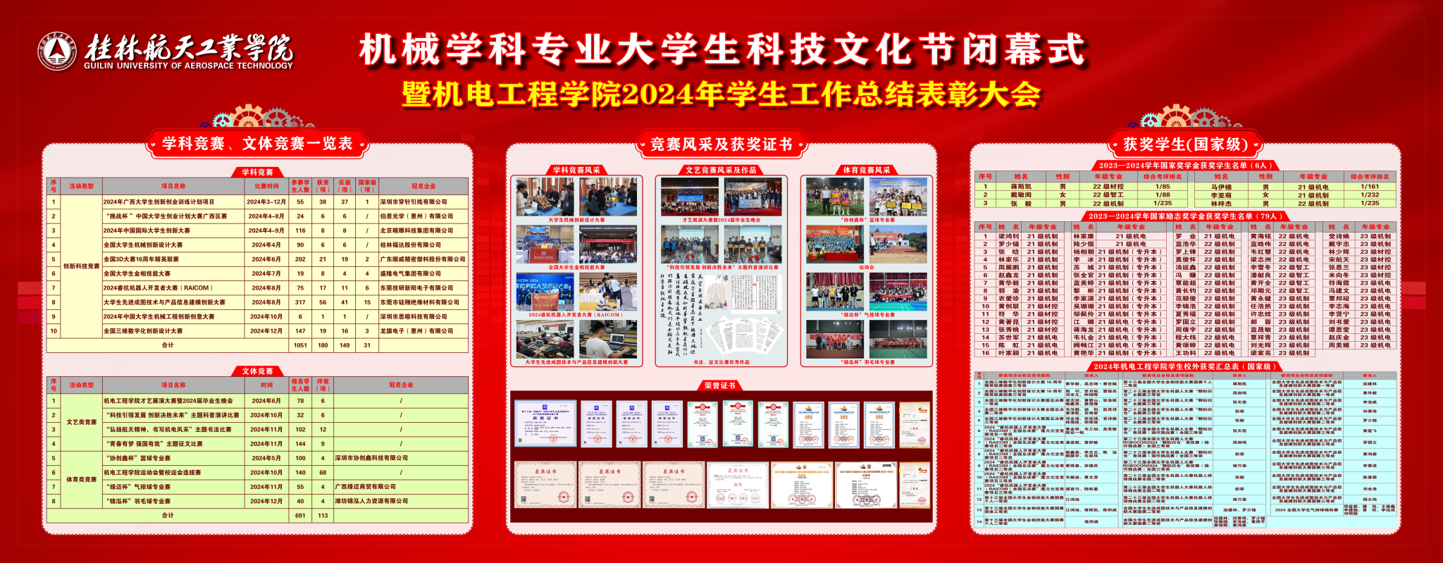 会上, 韩兴国代表学院总结汇报了2024年度学生工作及科技文化节成果。东莞技研新阳电子有限公司人力资源委员会总经理杨立志代表合作企业发言,高度赞赏桂航学子的创新精神、实践能力、航天品质,并表态将长期余桂航开展产教融合订单培养及共同举办科技文化竞赛。邵怡峰作为深圳思榕科技研发骨干代表校友发言,表达对母校培育的感恩,表态要通过自身努力擦亮桂航品牌,熊中刚教授、孙高乐同学分别代表师生发言,分享了组织和参与科技文化竞赛、订单班活动的经验体会。