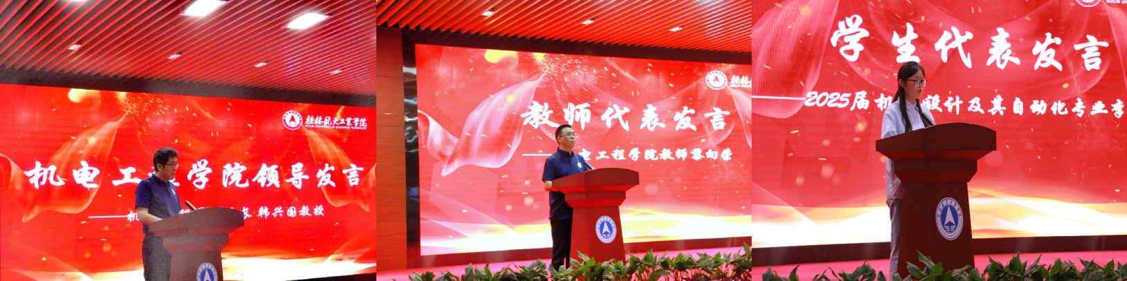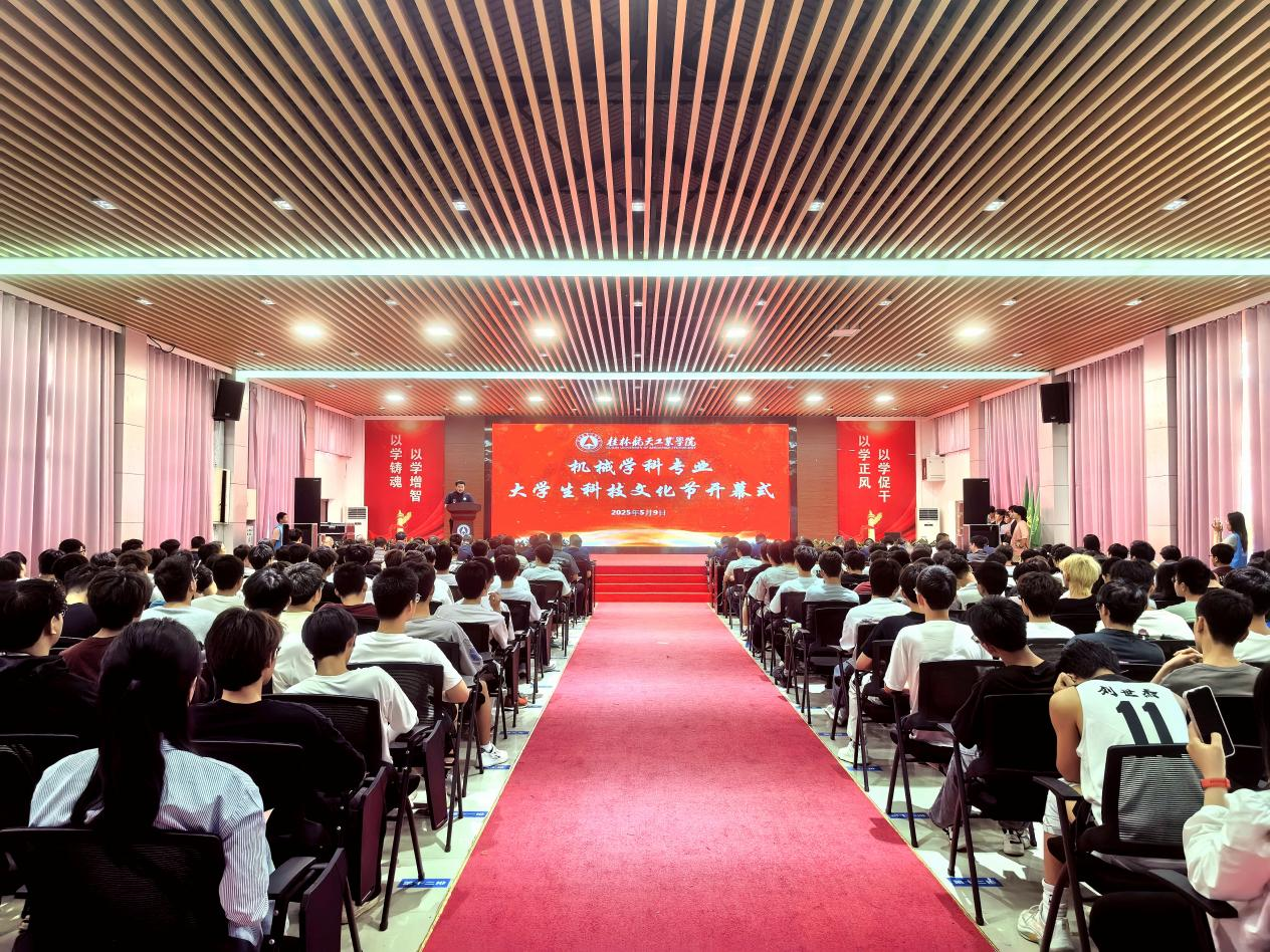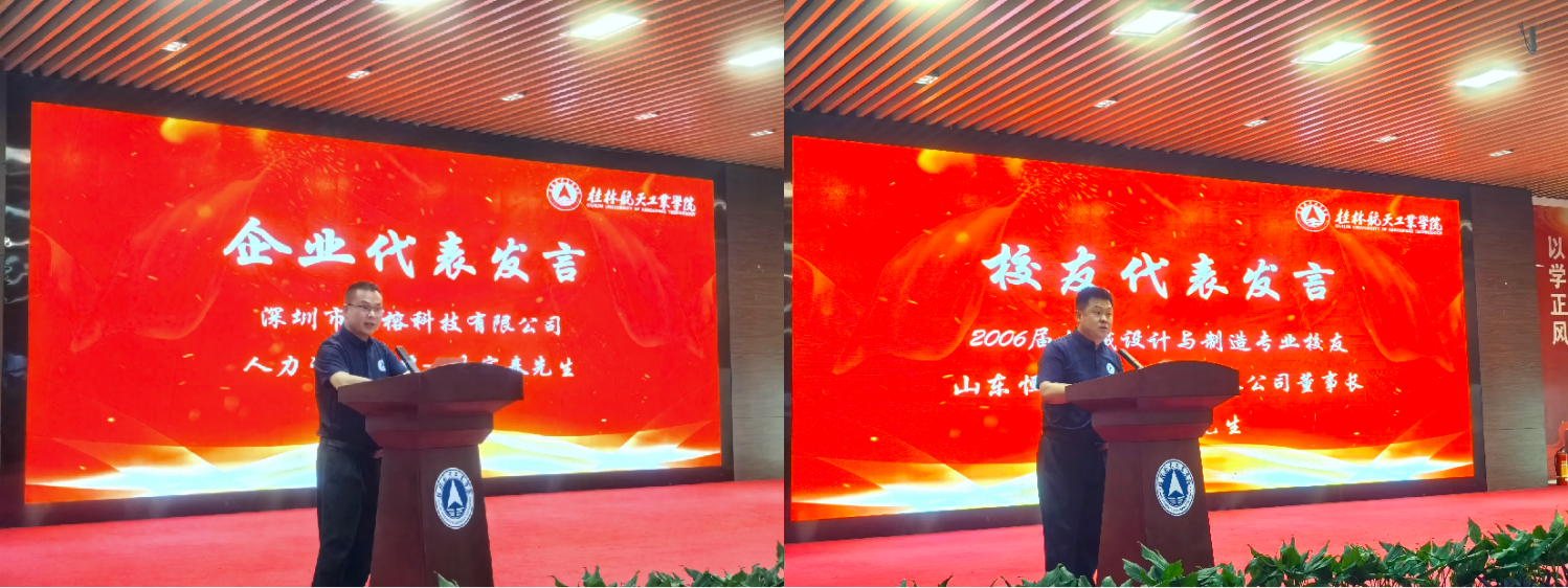 深圳市思榕科技有限公司人力资源总监易家春先生作为企业代表发言,回顾了思榕科技与桂航多年来的合作成果,并展望了未来在人才培养、技术研发等领域的深度合作愿景。山东恒远智能科技有限公司董事长、世界杯官网2006届机械设计与制造专业校友张永文分享了创业历程,勉励学弟学妹们以“敢闯敢创”的姿态拥抱时代机遇。在线买世界杯平台院长韩兴国,副书记马世文,教师代表黎向荣与学生代表李亚萌分别发言,汇报了首届科技文化节的成果及第二届科技文化节年度规划,表达了以科技文化节为契机,践行育人使命、锤炼专业技能的决心。