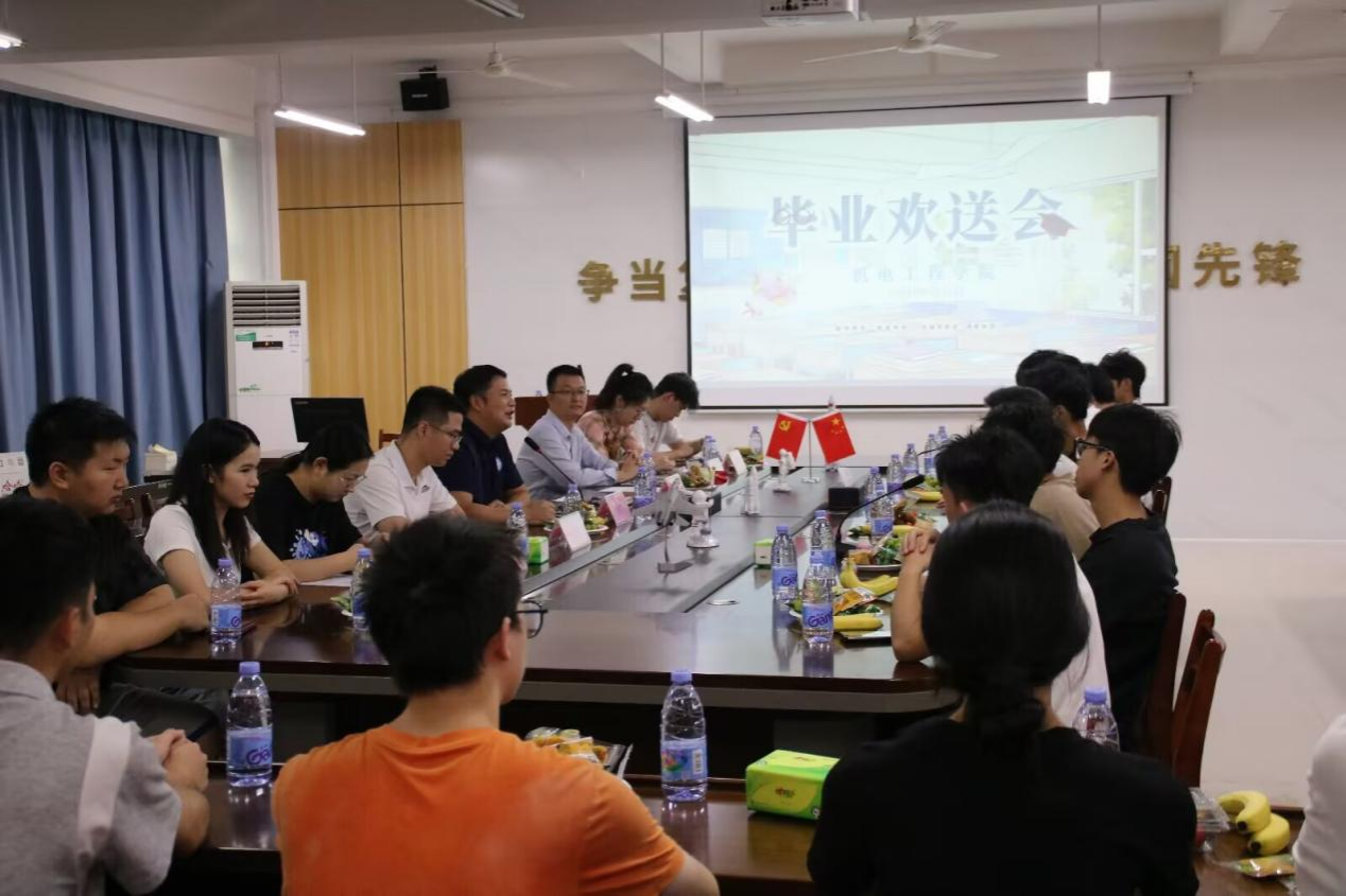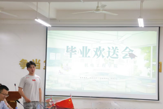 欢送会上,杨华以“机电精神的传承者”为题致辞,深情回顾了毕业生在校期间的高光时刻:从学科竞赛斩获殊荣,到科研项目中攻坚克难,再到志愿服务与文体活动中的亮眼表现,他们以青春之力为学院书写了无数精彩篇章。杨华勉励学子们将“特别能吃苦、特别能战斗”的航天品格融入未来征程,以创新与勇气迎接时代挑战。