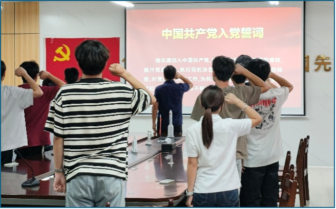 此次活动通过“仪式教育+理论学习”双融合模式,深化了政治引领与党性修养。下一步,学院各学生党支部将持续推进“第一议题”学习制度,依托“三会一课”、红色研学等载体,推动青年党员将理论学习成果转化为服务师生、建功立业的实际行动,为学院高质量发展注入强劲动能。