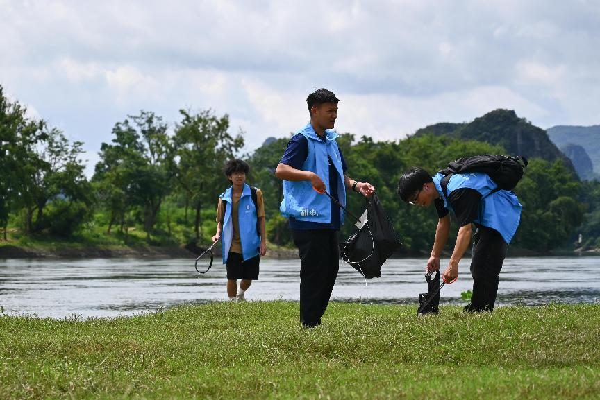 此次行动成效显著:河滩环境焕然一新,更通过“思想宣讲+实践行动”双轮驱动,将生态文明理念深植群众心中。正如习总书记指出的,“绿色发展是发展观的一场深刻革命”,志愿者们以青春之力践行了这一理念,让生态保护与经济发展同频共振,为漓江流域的绿色转型贡献智慧与汗水。