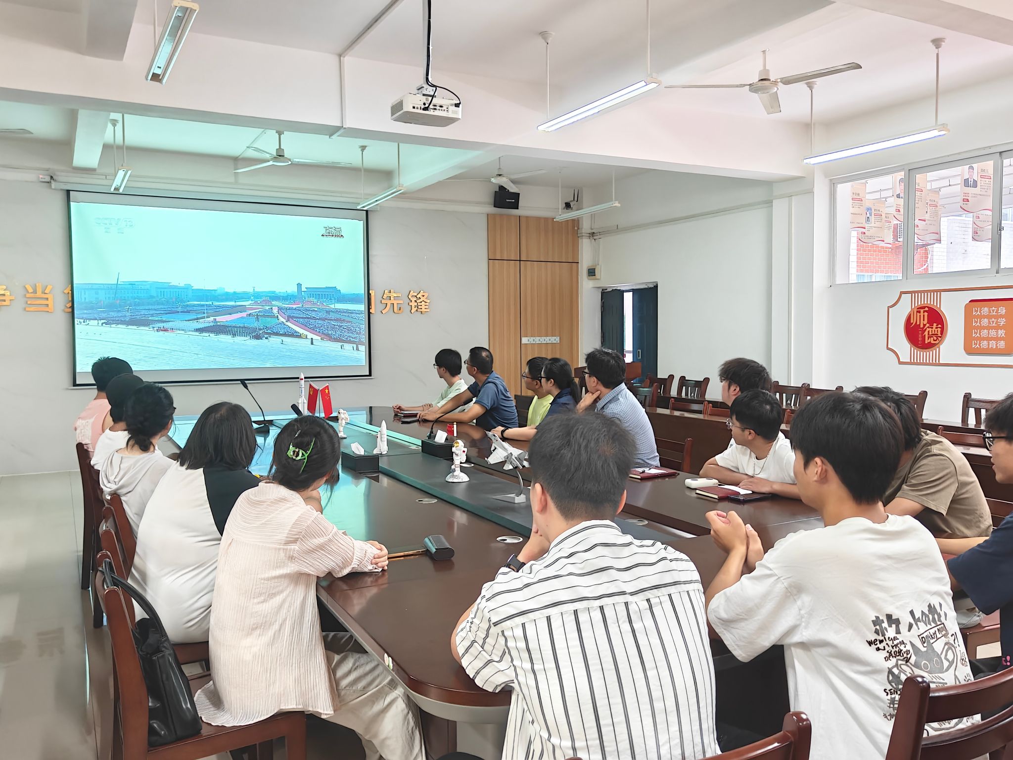 在观看过程中,师生们全神贯注,多次以热烈掌声回应阅兵仪式中的重要环节。庄严的纪念仪式、详实的历史回顾以及习近平总书记讲话中关于“以史为鉴、开创未来”的深刻阐述,让在场师生深受震撼与教育。大家一致认为,此次阅兵是一堂生动的爱国主义教育课,80年前的伟大胜利是中华民族伟大复兴历程中的重要里程碑,值得全体中华儿女铭记于心。
