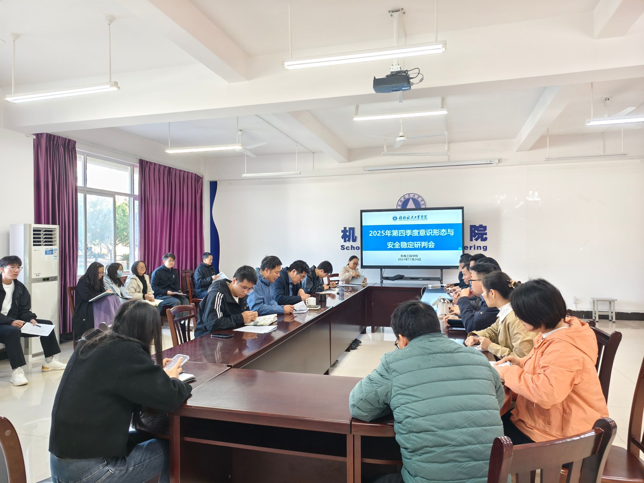 11月25日,在线买世界杯平台召开2025年第四季度意识形态与安全稳定工作会议。学院党政班子成员、各教研室主任及全体辅导员参加会议。