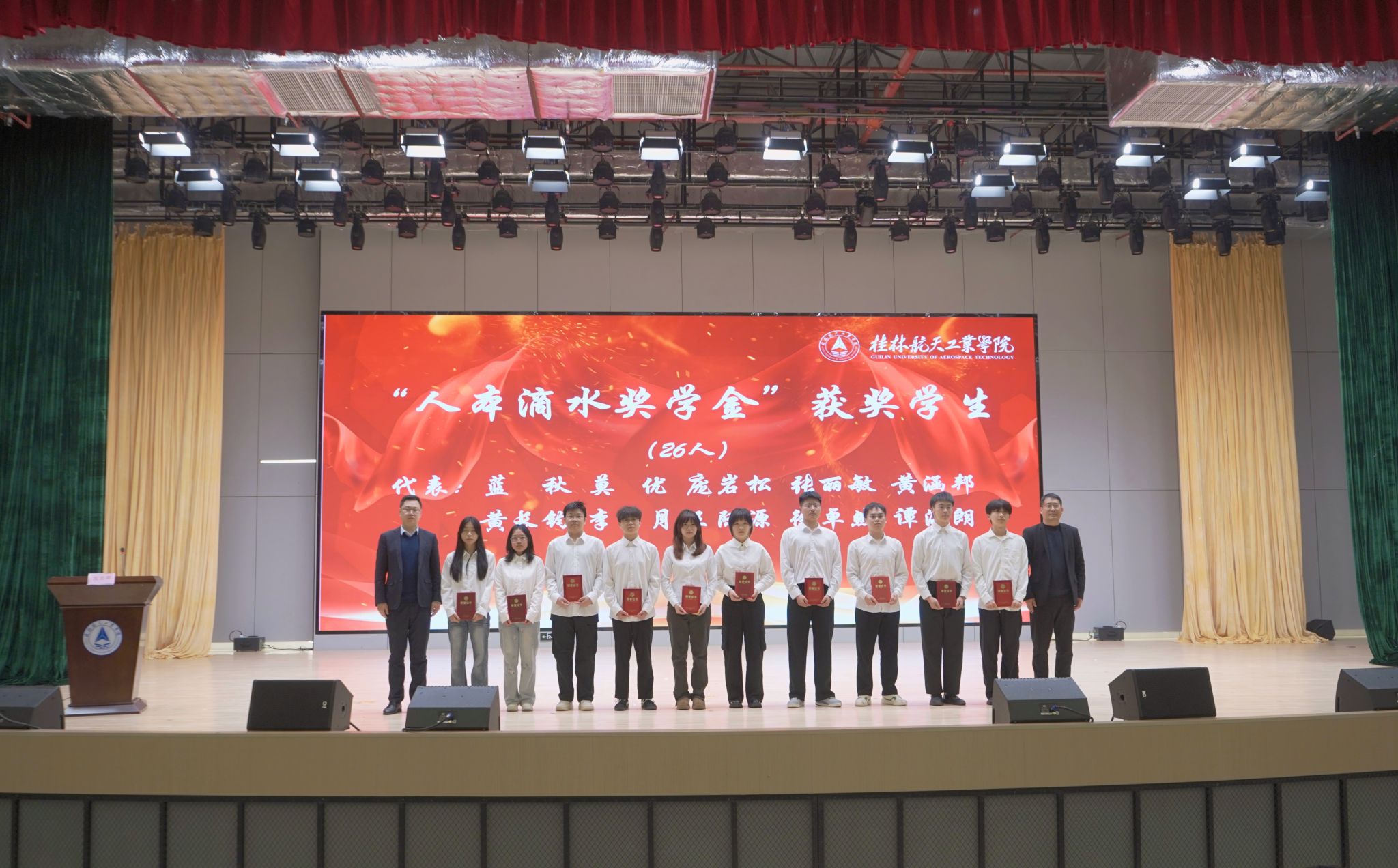 大会举行了企业订单班结业仪式,技研新阳智机融合工程师班、硅翔机械工程师班共26名同学已圆满完成定制化培训课程与实践考核,企业代表为结业学生代表颁发了结业证书。随后,浙江滴水慈善基金会捐资21万元设立“人本滴水奖学金”,基金会负责人向学院捐赠了牌匾。大会还表彰了2025年度在文艺、体育、社会实践、科技创新等方面表现突出的先进集体和先进个人,与会领导和嘉宾分六个批次为获奖代表颁奖。