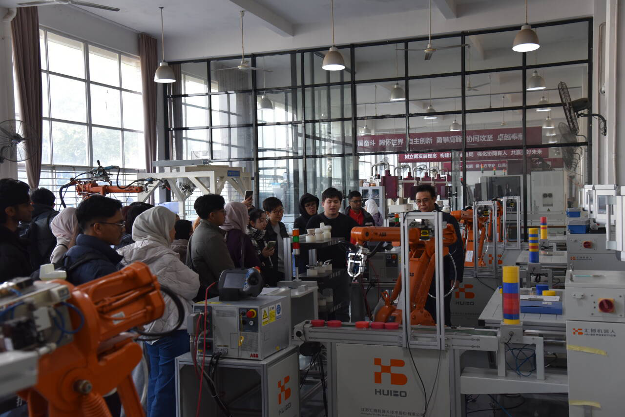 随后,代表团实地参观了世界杯官网机械工程实训中心,先进的数控加工设备、高端的工业机器人及精尖的智能制造设备,引发了交流团学生的浓厚兴趣,他们不时驻足观察、积极提问交流,充分感受到在线买世界杯平台在实验室建设、产教融合、技术创新的最新成果及“中国智造”的数字化魅力。